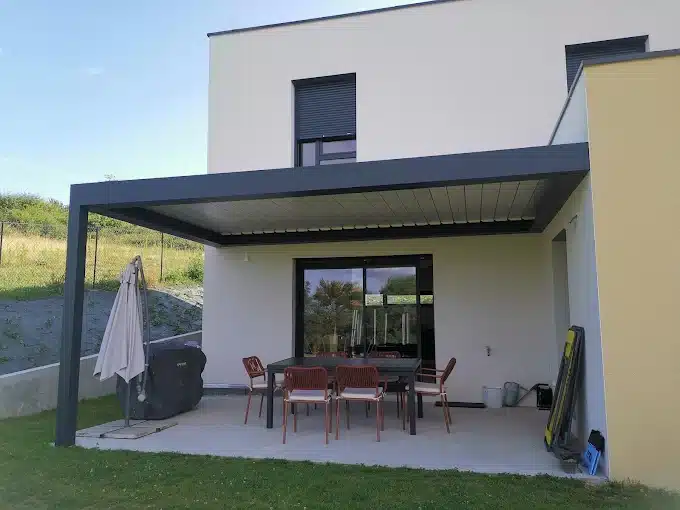 La pergola bioclimatique est équipée de lames en aluminium orientables, motorisées ou manuelles. Elles régulent la température naturellement, vous protègent du soleil, de la pluie et du vent, tout en assurant une parfaite ventilation. Adossée à la façade ou autoportée dans votre jardin, elle s’adapte à tous les styles de maison, y compris les maisons contemporaines et les bâtis plus traditionnels.
